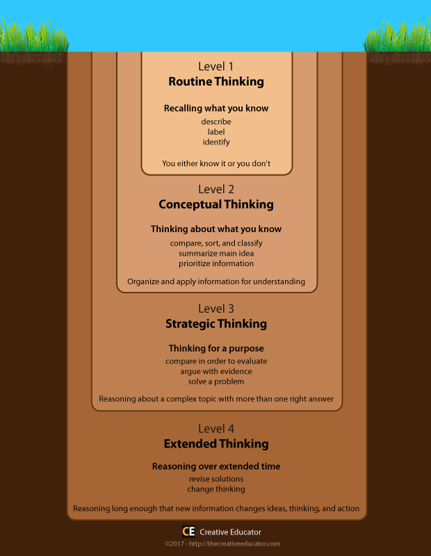 Students need to create to learn at all levels of thinking, but the act of creating isn’t justification to put a task at the highest level of either Bloom’s Taxonomy or Webb’s Depth of Knowledge.